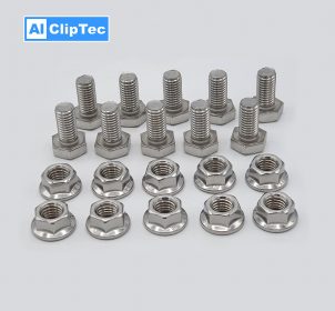 10x Sechskantschrauben mit Sperrzahnmutter M10x20 aus Edelstahl A2-70, blank, rostfrei passend für Solarprofil 40×40