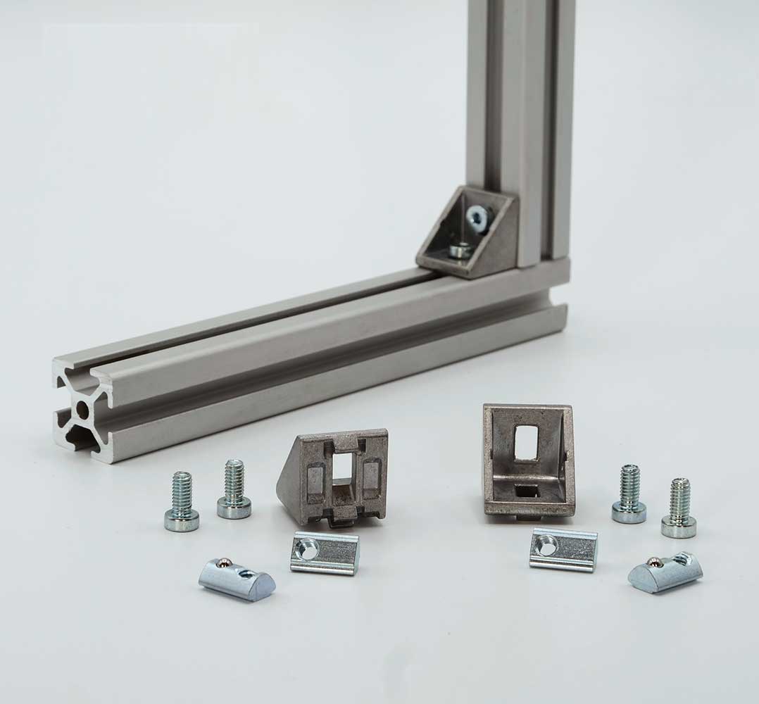 Set: 1x Winkel, 2x Schrauben, 2x Nutensteine mit Kugel