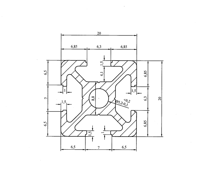 Aluprofil AlClipTec 20×20 Nut 6 – 0.1-6 m