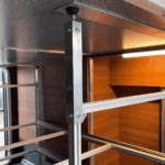 Viele Regalsysteme lassen sich nicht vollständig in der Heckgarage montieren, weil die Einlasshöhe der Tür (Türschwelle) niedriger ist als die Höhe der eigentlichen Garage. FixSlide löst dieses Problem. Du baust dein Regalsystem außerhalb des Fahrzeugs vollständig auf – mit exakt passenden Maßen – und schiebst es dann problemlos in den Innenraum. Durch die verschiebbaren FixSlide-Adapter kannst du das Regal anschließend im Fahrzeuginneren exakt positionieren und sicher fixieren.