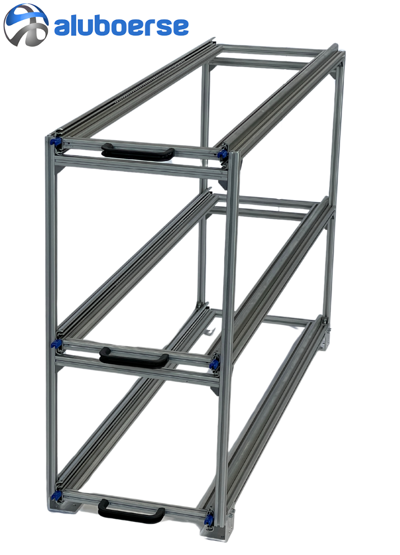 Ja, das System ist vollständig erweiterbar! Du kannst weitere Etagen hinzufügen, die Breite durch zusätzliche Profile anpassen oder sogar Seitenwände und Schubladen ergänzen, um deine individuellen Anforderungen zu erfüllen.