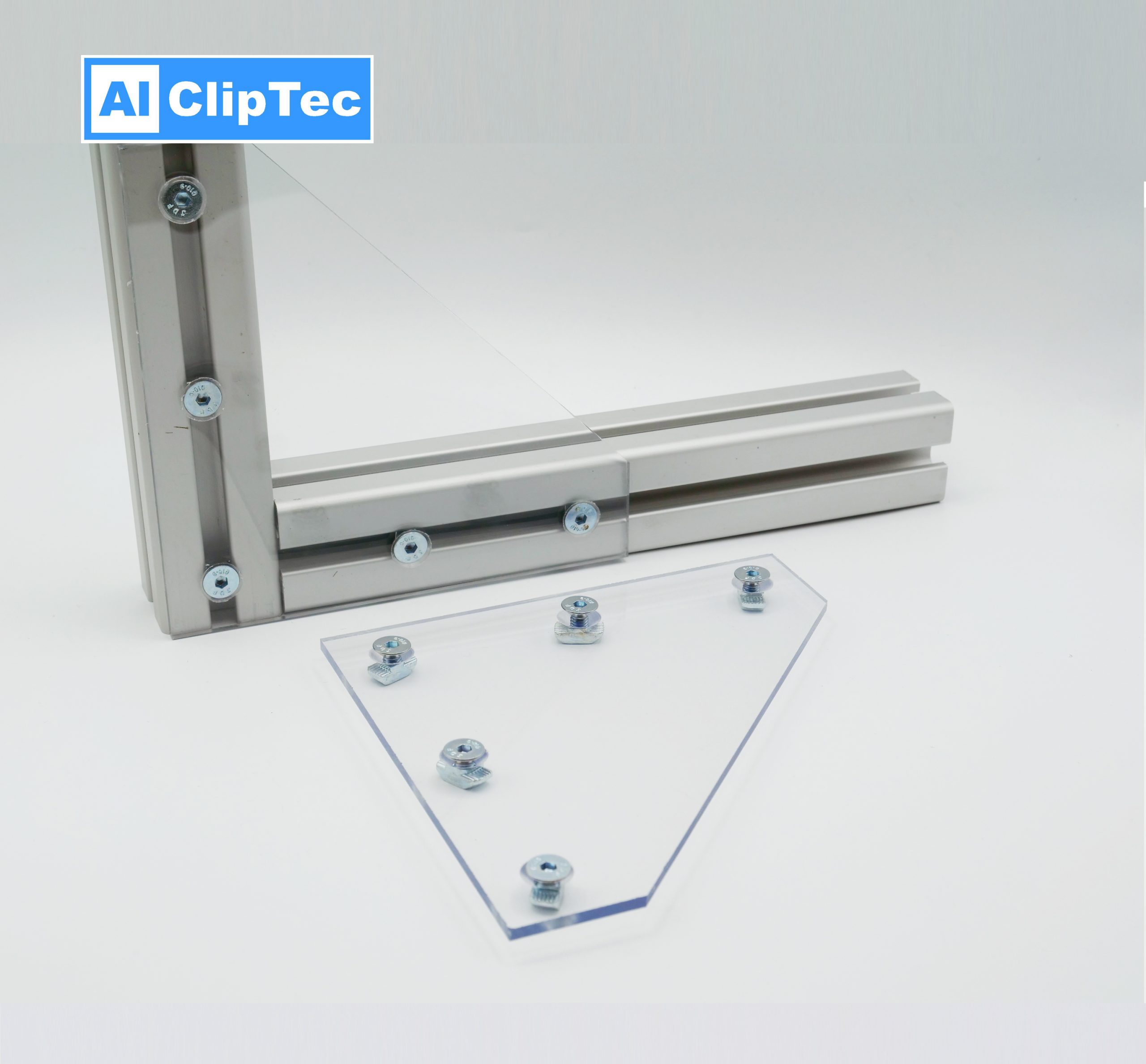 Knotenblech aus PETG 160 x 160 x 4 mm inkl. passender Verschraubung, für eine stabile Eckverbindung.