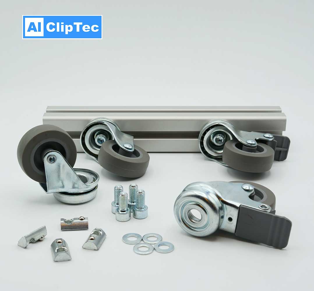 Lenkrollen mit Feststellbremse für Nut 10 inkl. Verschraubung/Verbindung.