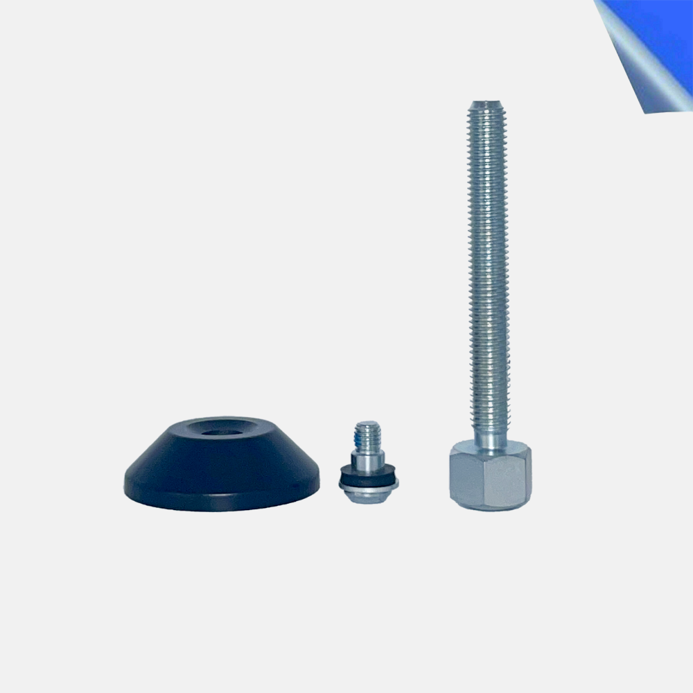 Komplettset zur Montage eines festen Stellfußes mit M12-Aufnahme. Ideal zur stabilen Justierung von Maschinenrahmen, Arbeitsplätzen, Gestellen oder Transportlösungen. Die Trapez-Tellerform aus schwarzem Zinkdruckguss sorgt für festen Stand, während die mitgelieferte Gummischeibe für vibrationsdämpfende Eigenschaften sorgt.