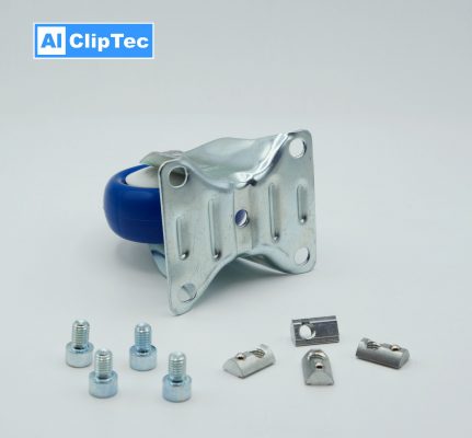 Schwerlast-Bockrolle STAR Nut 10 – Verbindung Nut für 45er Profil, inkl. Verschraubung