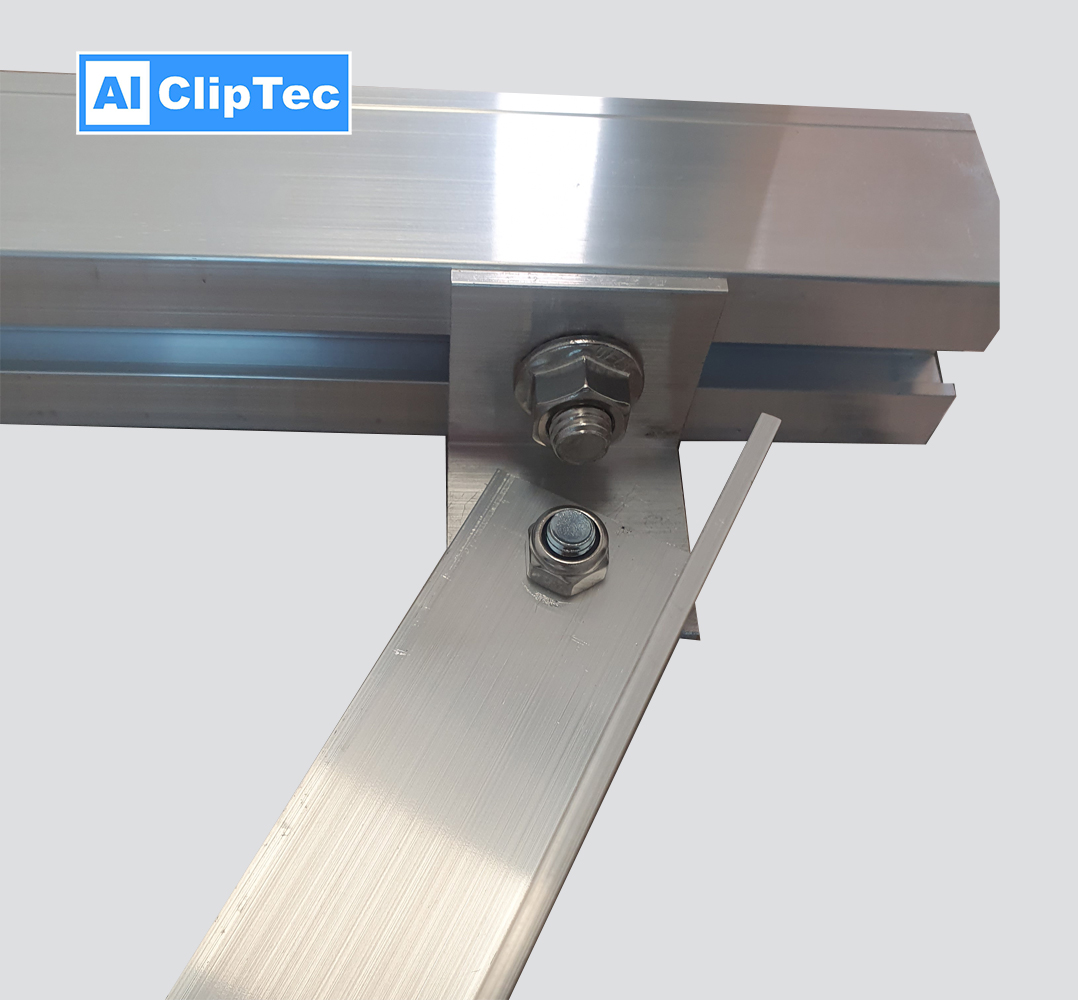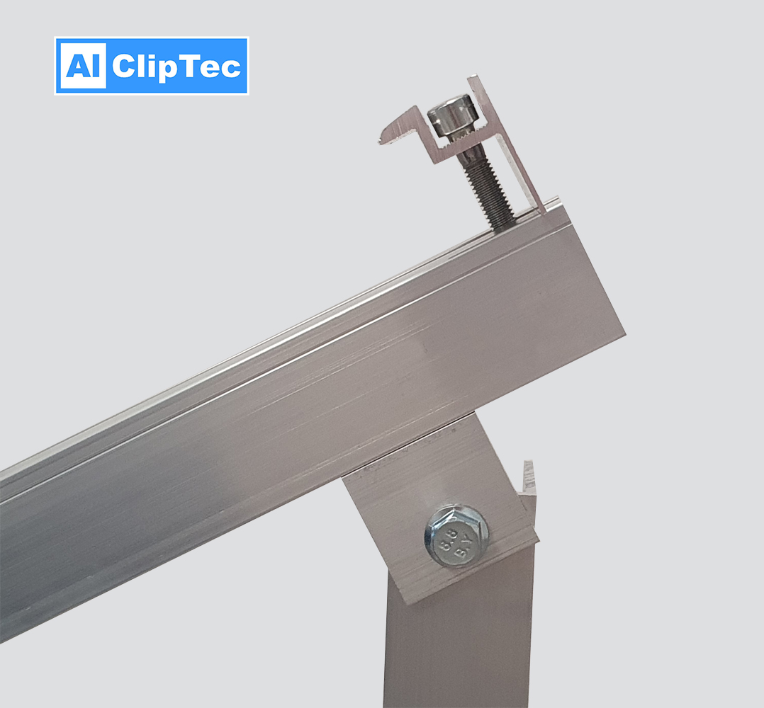 Der Neigungswinkel ist individuell verstellbar von ca. 28-40° und die Halterung besteht aus witterungsbeständigem Aluminium.