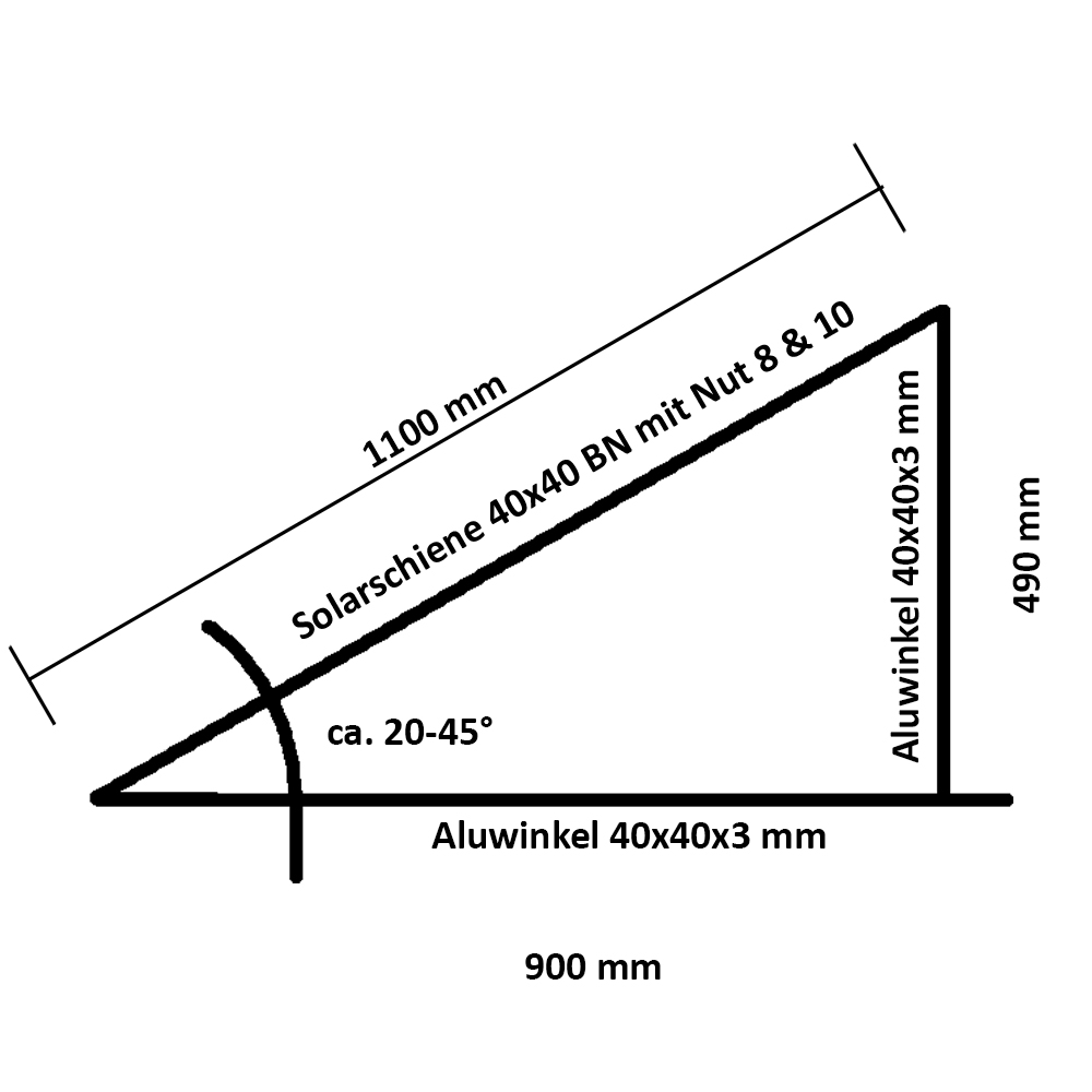 - 2x Winkelprofil aus Aluminium 40x40x3 – 900 mm (1x links und 1x rechts angeschlagen)