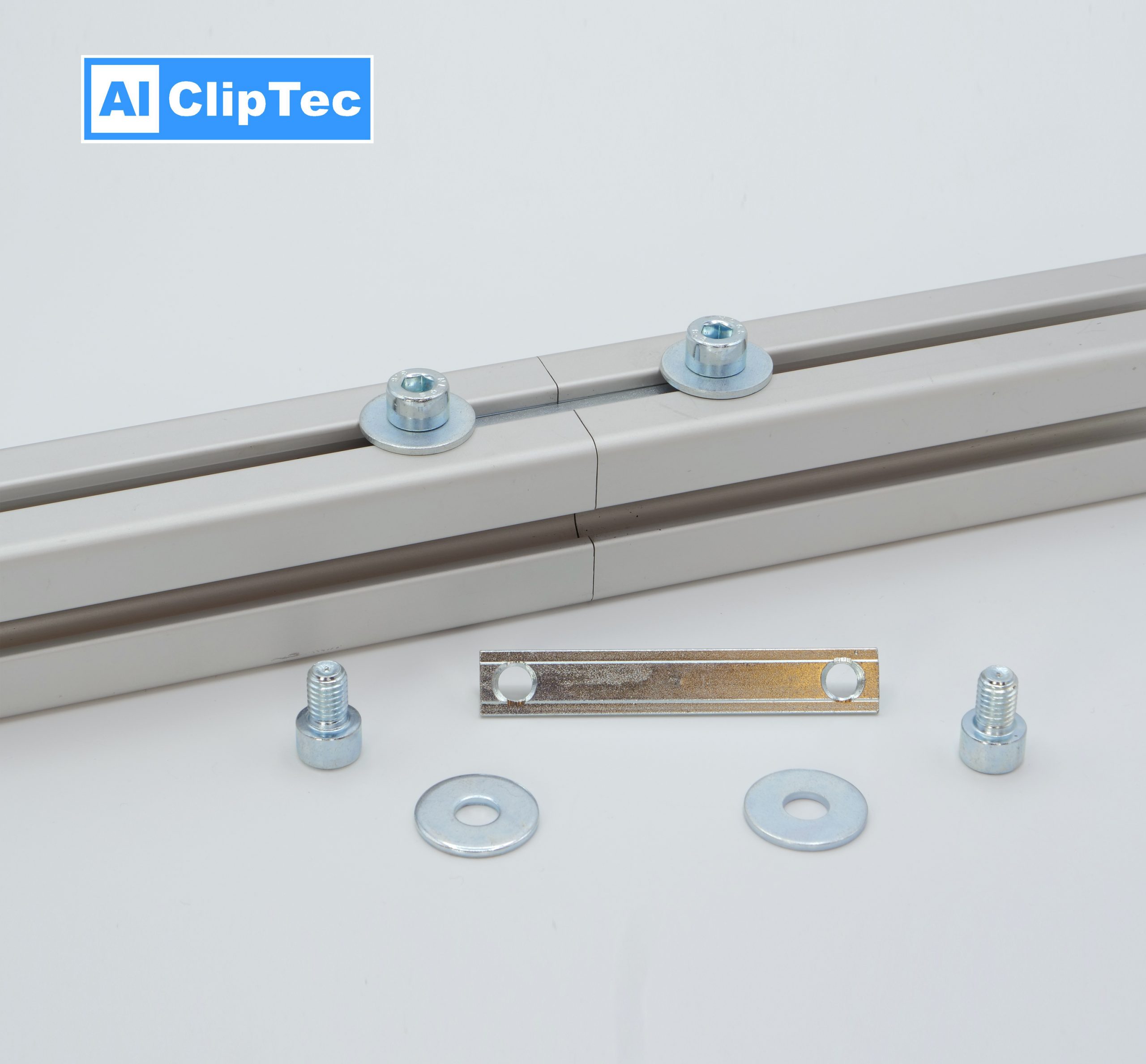 Mit diesem Streckenverbinder können ohne Profilbearbeitung zwei Profile stirnseitig verbunden werden. Er passt zu B-Typ und I-Typ Nut 8 Profilen.